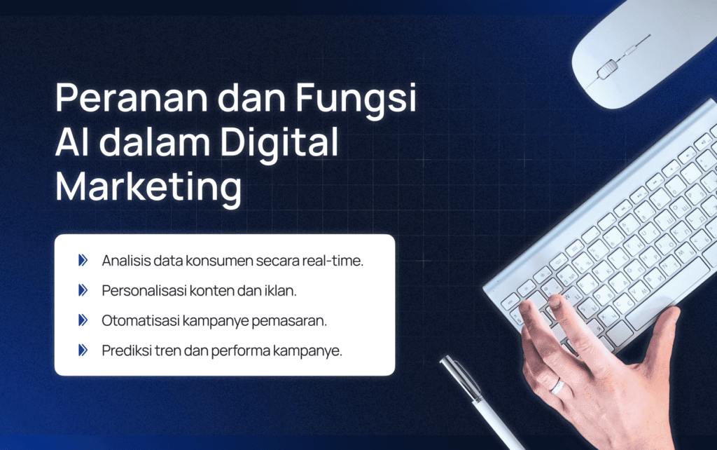 Peran AI dalam digital marketing sangat luas dan mencakup berbagai tahap funnel pemasaran. Beberapa fungsi utama AI untuk digital marketing meliputi: